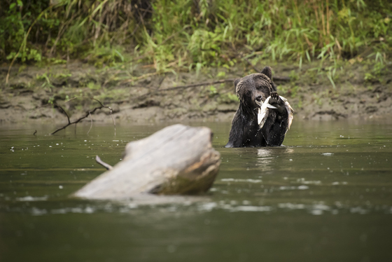 A young Grizzly enjoys an all-you-can-eat buffet of spawning salmon on the Atnarko River.