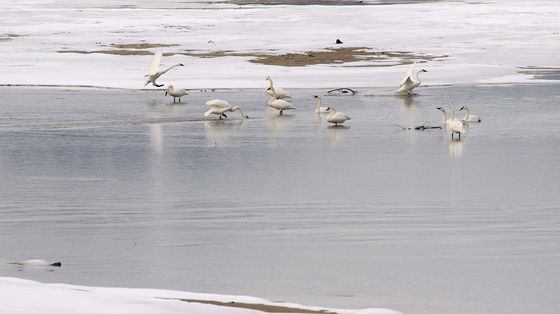 Trumpeter swans gathering at the slough.