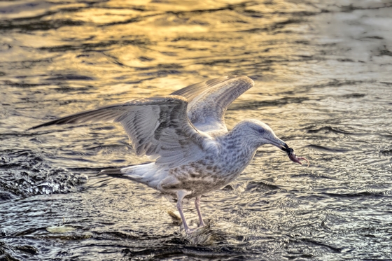 A common gull can truly feast on salmon during the annual spawning run in Toronto's Humber River.