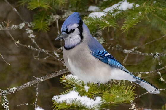 I love the beautiful colors and markings on the Blue-Jay. They are a wonderful contrast in the green pine needles. Common, yet beautiful.