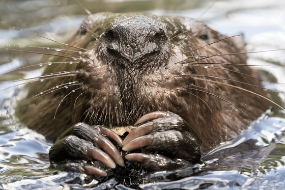 Changes in weather patterns often make photographing animals difficult as they are not in their usual haunts. Sometimes however these changes provide us with new exciting experiences. Algonquin park was so dry this past Spring that I was able to cross a beaver dam to an area I had not explored. I was able to view from there the new location of the local beaver and set myself up to watch and slowly move in. For two days they worked around me coming out of the water and dragging tree branches back to the water just out of sight. I could hear them on the bank on either side of me. I sat tight and my patience paid off. Soon they completely ignored me, feeding just feet away and literally swimming under the bank I was crouched on. Twice a beaver surfaced and came up right beside me. I could have put my hand down and touched it. Magical.