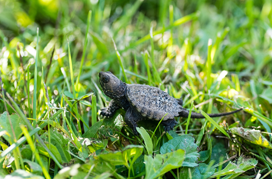A hatchling snapping turtle makes it's way towards the Rideau River.
