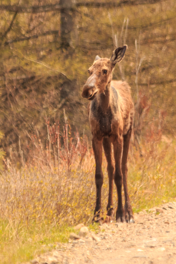 young moose out by itself looking for it's mother