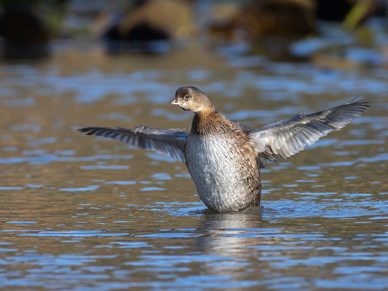 A pied-billed grebe waving wings
