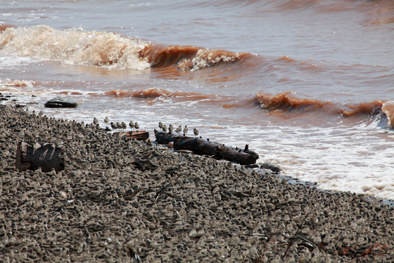 Looking like pebbles on the beach, shorebirds wait, shoulder to shoulder, for the tide to go out so they can feed on the mudflats of the Bay of Fundy before their non-stop flight to South America