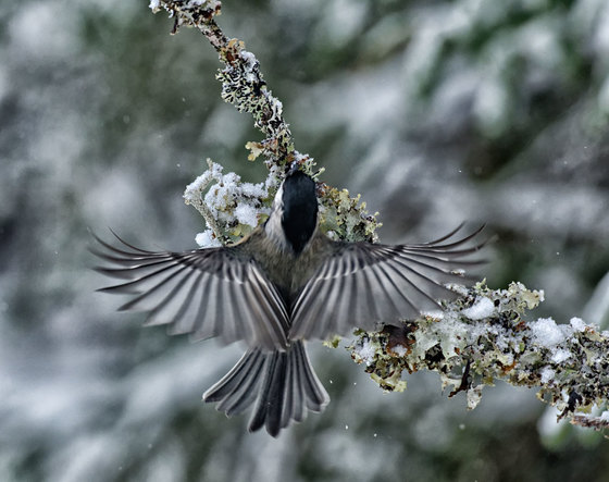 a Black-capped Chickadee searching for food
