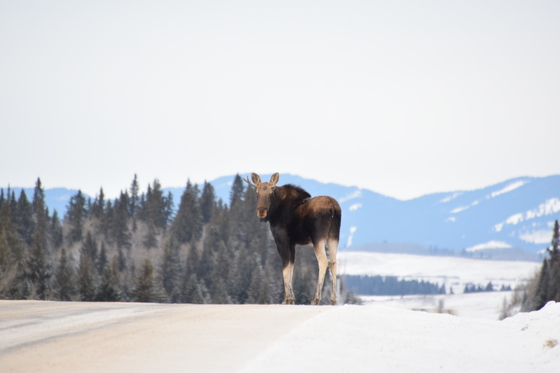 Towards the end of a day trip through the foot of the Rockies, we stumbled across this adolescent moose on our way home. It felt as if he was being presented to us on stage with the highway immediately falling away beneath his feet. It was a unnerving having the young buck stare at us for what felt like an hour. But in reality he stood there for only a couple of minutes before trotting off into the woods.