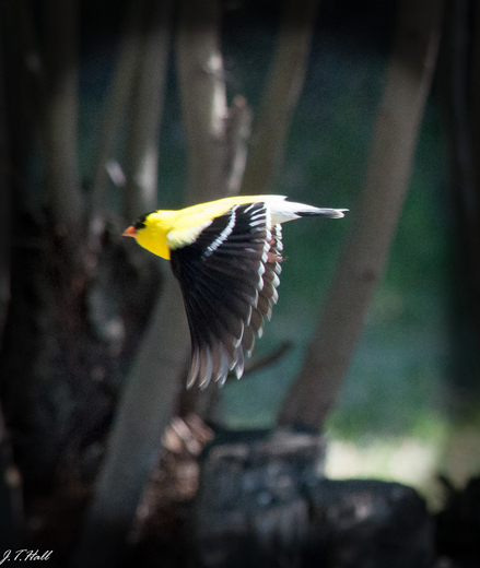 Golden Finch on the Wing