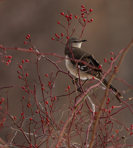 I observed this Mockingbird eating berries in the winter mornings sun.