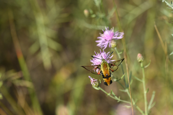 This clear winged moth was on a constant search for nectar as it moved systematically from one flower to another. The challenge was to 'freeze' the wings in flight.