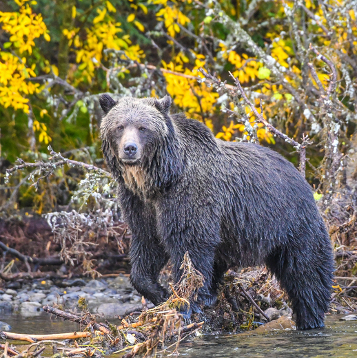 Male Grizzly taking a long look at us in the boat on The Chilko River.