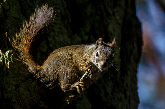 Caught this little Red Squirrel as he was climbing down his giant Douglas Fir tree home while I was walking along the Tsawout First Nation Reserve Trail this past August. From this angle, he made me think of a warrior with his staff.