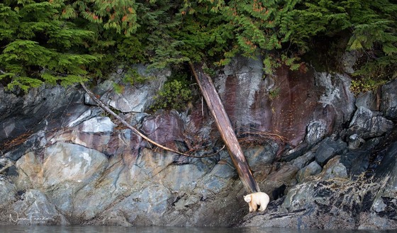 What an absolute treat to watch this pair. Strawberry a Kermode ( Spirit) Bear and her cub Hope as they foraged along the coast line.