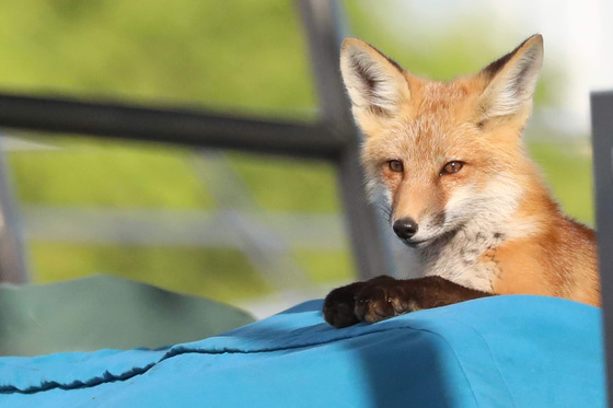 After playing for a few hours this little kit decided he needed a rest, so he laid down on top of one of the boats, high enough so he could watch his siblings playing in the other boats. He looks pretty comfortable here!