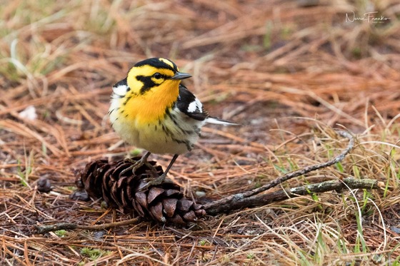 Wonderful Warbler When I am away I rarely go out looking specifically for birds. 80% of my shooting time at home deals with birds. I love them, but mammals are my trip goal. Waiting patiently for a moose that was not appearing, I noticed a flash of colour. It took a while but what a treat to be able to capture a picture of this Blackburnian Warbler. The moose was a no show.