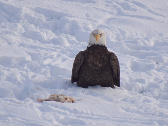 Sheffield Mills, N.S. has an Eagle Watch festival every winter, and this eagle was guarding his chicken against the 70+ birds in the area.