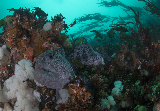 Very rarely have I seen a wolf eel hanging out on a reef outside its den. I was lucky to capture this on a drift dive outside of Telegraph Cove, BC