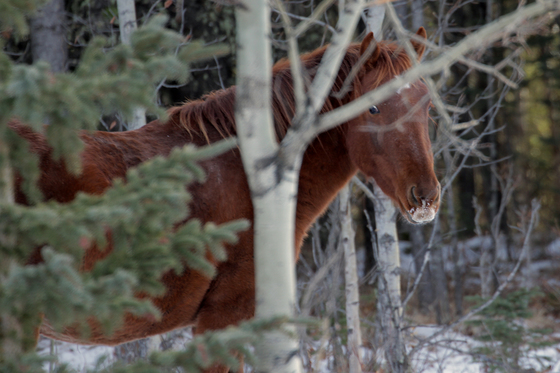 I found this shy wild horse hiding behind a tree while out for a drive.