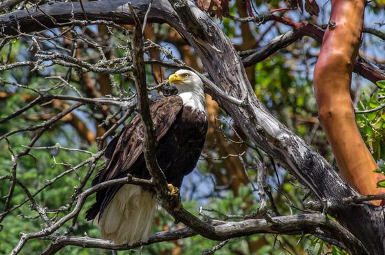 One of the magnificent Bald Eagle visitors, who come to catch the Midshipman Fish in Booth Bay during the Spring.