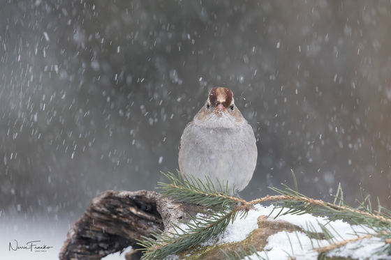 A White Crown Sparrow visiting the yard on a lovely snowy day.
