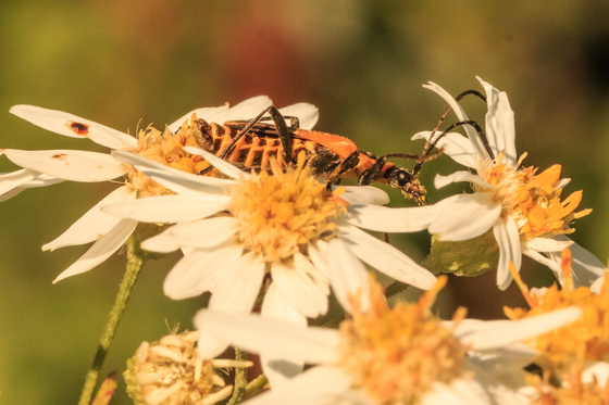 insect (I don't know what kind) is covered in pollen from the flowers
