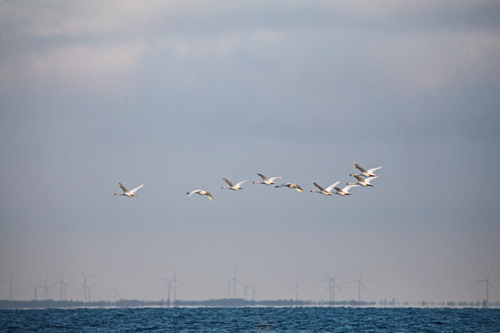 swans take flight from Amherst Island at the end of December