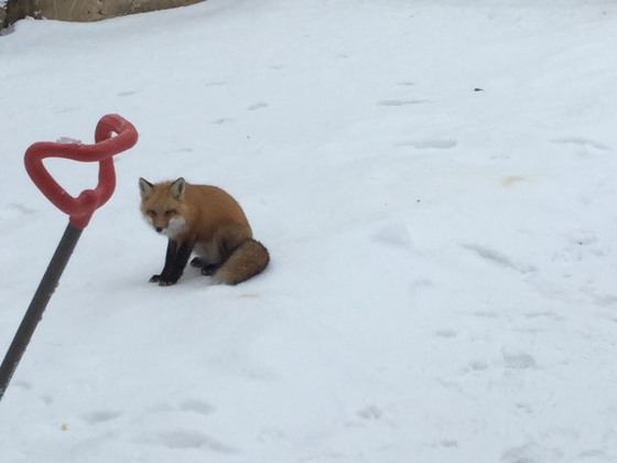 This beautiful fox came by in the morning while I was standing outside. He was looking for food.