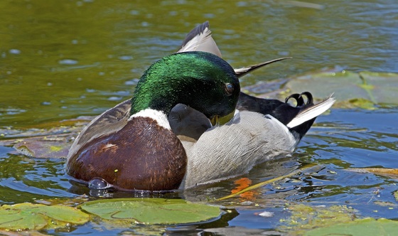 Mallard drake preening itself