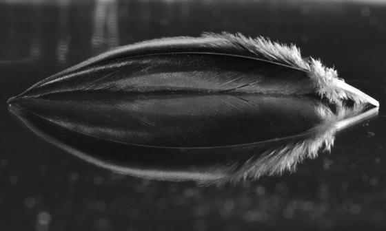 Mirrored image of a chickadee feather
