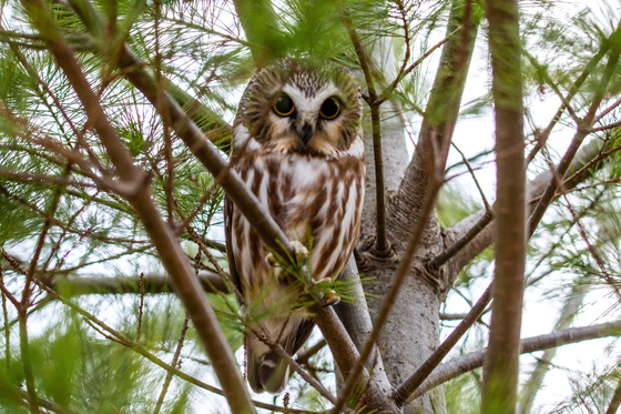 This Saw Whet Owl is absolutely adorable. He's tiny with the biggest eyes! He didn't seem to mind being observed from afar.