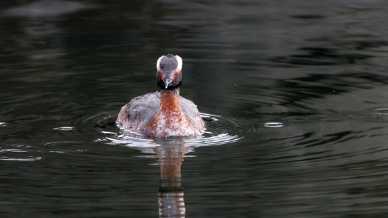 My first sighting of a Horned Grebe swimming around the Cobourg harbor.
