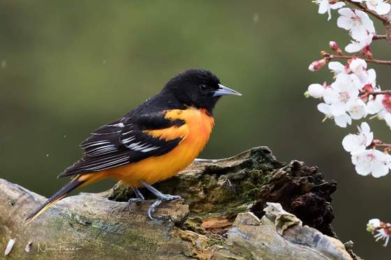 Often the only glimpse of the male oriole I get is a bright orange flash. Once in a while he comes in for a short visit.