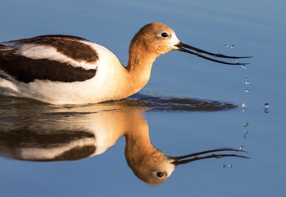 An American Avocet dipping into roadside marsh water, just outside the city of Regina, Saskatchewan