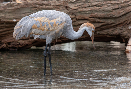 This young Crane stayed late into the season here. I watched it catching frogs that he was finding in the water or under the rocks on the shore. I noticed whenever he caught one he would dunk in the water a few times and watch it for a while then pick it up and eat it. I can only guess that the ones he found on shore were frozen and he was attempting to thaw them before ate them. :)