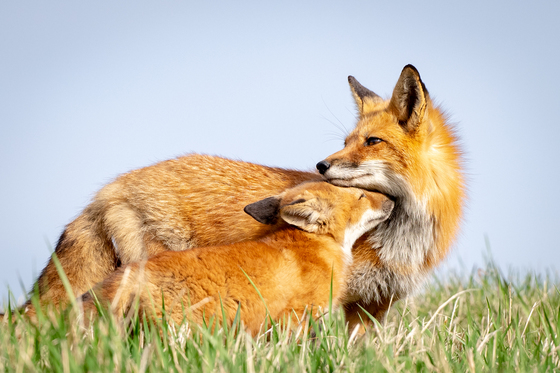 Taken just before Mother's Day last year, this fox pup was just full of love for its mother who was keeping on an eye out on 3 of its young