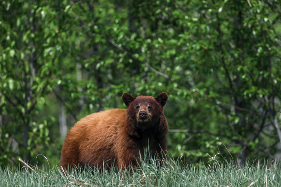 This beautiful cinnamon bear was grazing on fresh grass near Liard Hot Springs in Northern BC