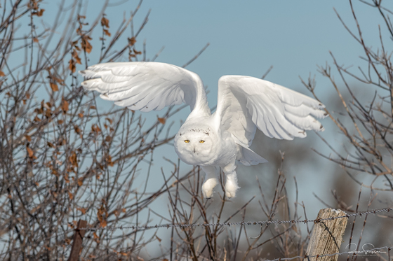 I was lucky to see this Snowy Owl sitting on a post from my car, I kept my distance as not to disturb the bird and waited hoping it would fly. I was lucky to be ready when it did.