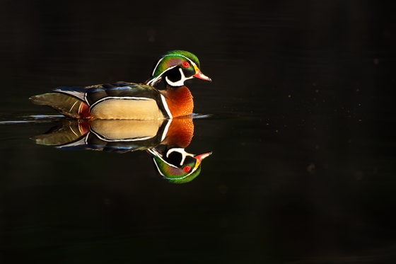 Wood duck and its reflection