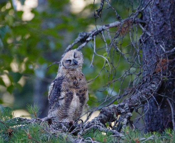 This Great Horned Owlet seemed to be daydreaming about something good.