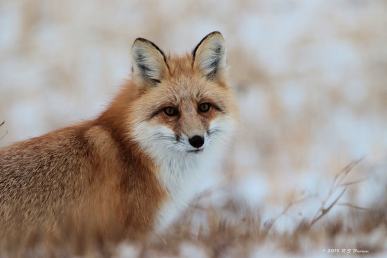 Saw this fox along the highway it was busy hunting saw it actually catch 2 mice I whistled at the fox to get it to look up in this shot