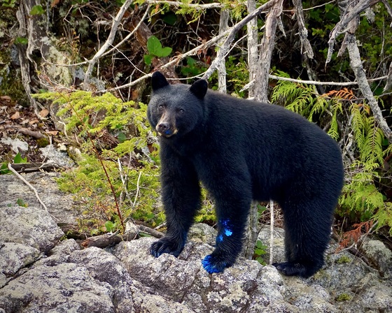 Black bear who got into somebody's blue paint supply