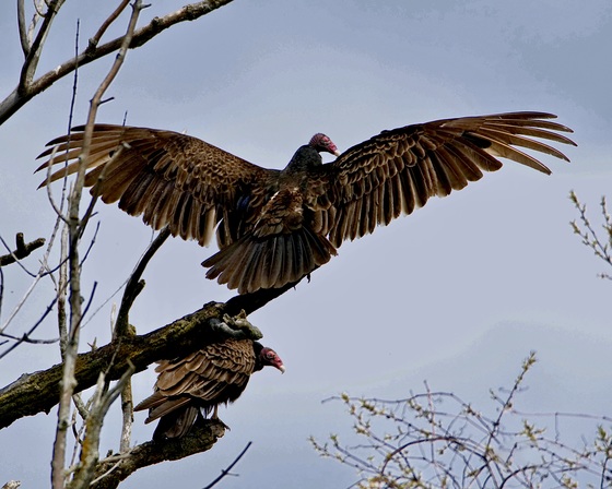 Turkey vulture drying it wings in the early morning