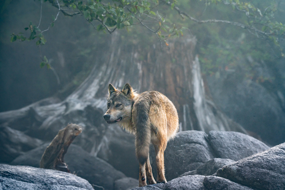 While on a 7-day Great Bear Rainforest expedition with Maple Leaf Adventures, we encountered two coastal seawolves in an experience I'll never forget. It was a foggy morning and the energy in our small group was high after hiking through ominous weather in the forest and hearing wolves howl to each other from every direction. They knew we were on their island and they wanted to make that known. Our expedition leader was Kevin Smith, co-founder of Maple Leaf Adventures. We followed him down to the beach from the hiking path and it wasn't before long when two wolves emerged from the forest and joined us, curious about who we were and what we had to offer. They came a mere few feet from us, showing no aggression and only curiosity. I captured the experience through my lens and took the time to enjoy this once in a lifetime opportunity for myself. Kevin later explained to us in his 18 years of coming to the Great Bear Rainforest, that close encounter with the coastal seawolves was an experience that had never happened to him before.