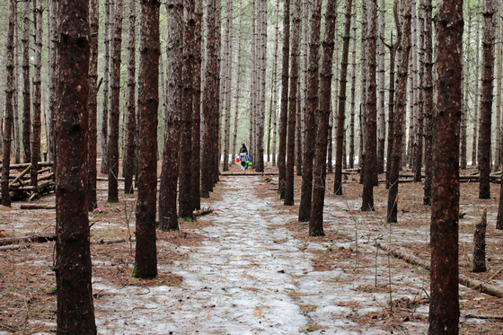 Whenever I got the chance to visit Ottawa I would make a point to take a walk in this what I refer to as a "mini-pine forest." Too often I don't come across anyone making no "sense of place." On this wet spring morning I was happy to capture this scene: a mother and her two children had finished picking some mosses for a particular in their backyard. I love the colors of the buckets that make a beautiful contrast. I also love the quote by Ralph Waldo Emerson: Who leaves the pine-tree, leaves his friend, unnerves his strength, invites his end. I come to this mini-pine forest to appreciate the beauty and serenity within, breathe the fresh air, to lose my mind and to recharge myself. With all due respect to Henry David Thoreau I don't come out "taller than the trees" but humbled by what the beauty of nature has provided us.