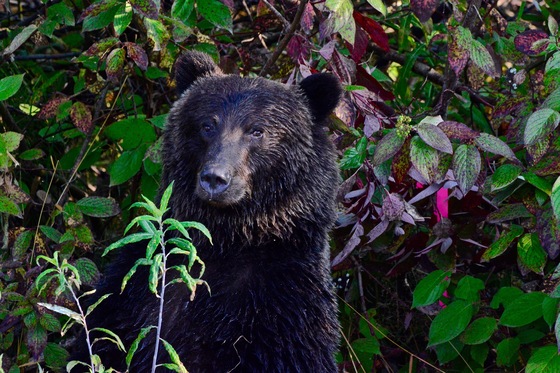 A grizzly takes time out from fishing to scratch h that itch.