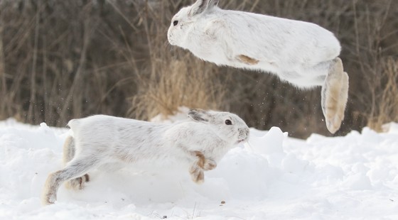 Always a good laugh to watch Snowshoe Hares jumping at each other. After observing them for several years, to me, it looks like they are playing more than fighting. They are so quick, I am even surprised at times that I get a shot of both in the same frame.