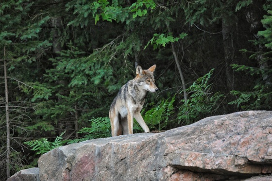 Algonquin Wolf getting to higher ground to get a better vantage point while hunting.