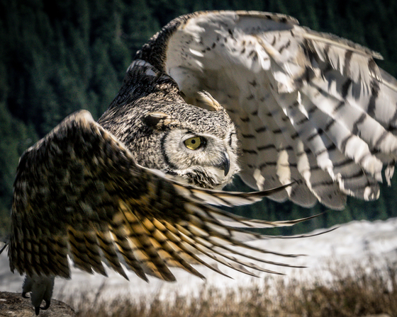 Great Horned Owl taking flight.