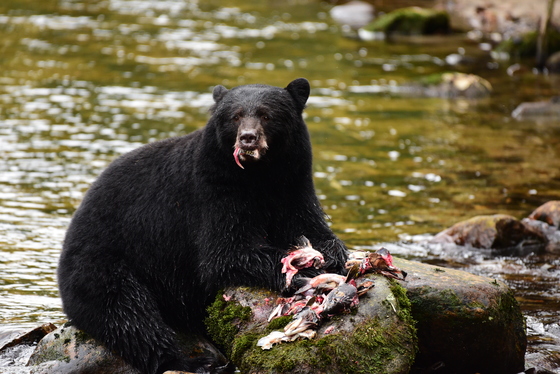 Nikon 750 w/ 200 - 500 Bear viewing on a salmon river in the Great Bear Rainforest. No edits.