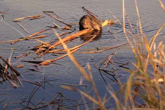 This little muskrat glided from the water onto a log during the golden hour, and took a drink from the pond.